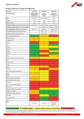 3 = very well suitable 2 = condition. suitable 1 = possible suitable, preliminary test necessary 0 = Not suitable