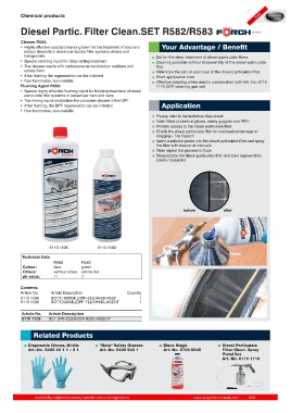 • Special cleaning liquid for deep-acting treatment Cleaning possible without disassembly of the diesel particulate