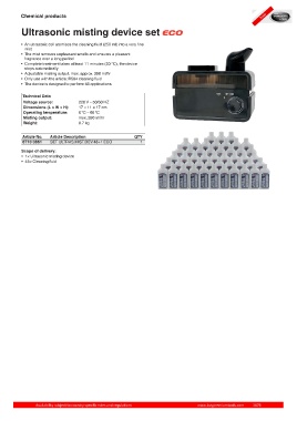 • An ultrasonic cell atomises the cleaning fluid (250 ml) into a very fine