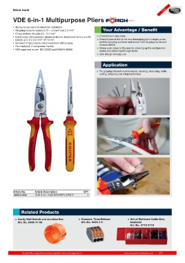 • Cable cutter with precision blades (induction hardened) for Cu und Al 6 functions in one pliers