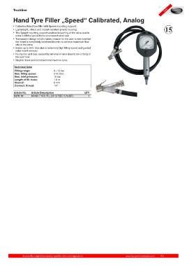• Calibrated hand tyre filler with Speed mounting support