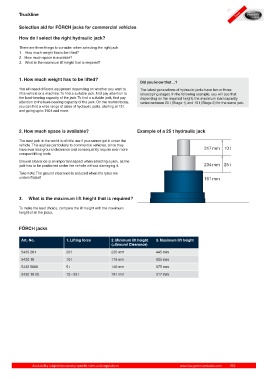 jack has to be positioned under the vehicle without damaging it. 234 mm 25 t