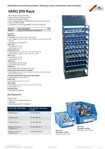 VARO Shelving and Stocking System, Workshop Lorries, Assortments, Vehicle Modules