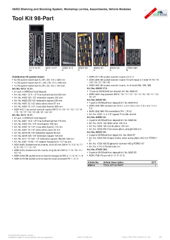 • 5× VS system insert size A, (W × D): 144 × 328 mm • AGR 4455: Bit socket wrench inserts TX with head drill hole TX 10 / 15