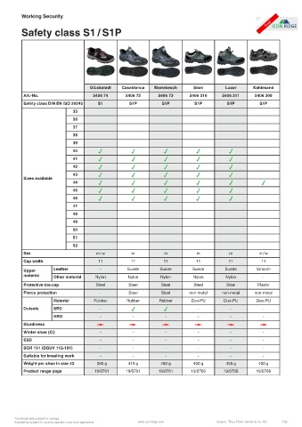 Safety class DIN EN ISO 20345 S1 S1P S1P S1P S1P S1P