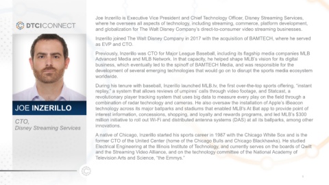 Joe Inzerillo is Executive Vice President and Chief Technology Officer, Disney Streaming Services,