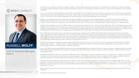 As executive vice president and general manager of ESPN+, Russell Wolff is responsible for leadership, management and oversight of all aspects of ESPN+,