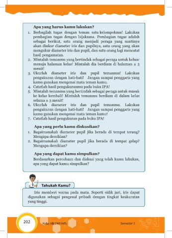 6. Ukurlah diameter iris dan pupil temanmu. Lakukan