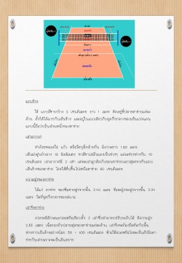 ได้แก่ ตำข่ำย ของทีมชำยสูงจำกพื้น 2.43 เมตร ทีมหญิงจะสูงจำกพื้น 2.24