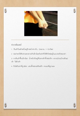 3 ยกส้นเท้ำขึ้นเล็กน้อย น้ ำหนักตัวอยู่ที่ปลำยเท้ำทั้งสองข้ำง ตรงบริเวณโคนหัวแม่