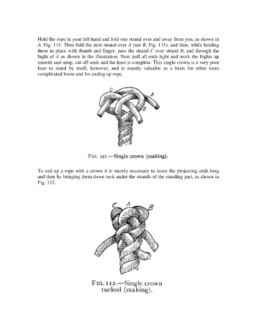 A, Fig. 111. Then fold the next strand over A (see B, Fig. 111), and then, while holding