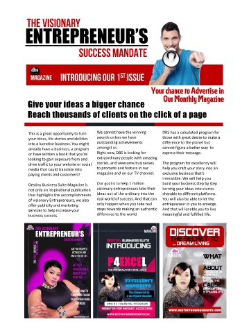 Destiny Business Suite Magazine is Our goal is to help 1 million build your business step by step