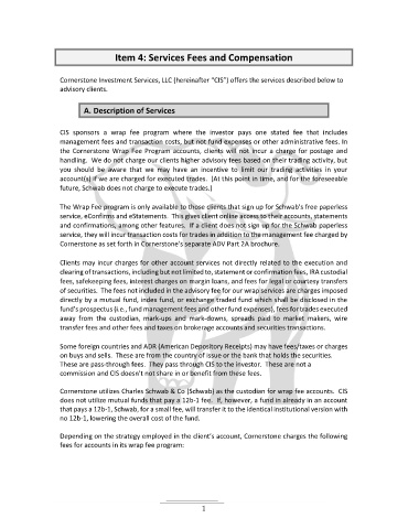 Cornerstone utilizes Charles Schwab & Co (Schwab) as the custodian for wrap fee accounts. CIS
