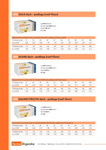 Declared thermal resistance R for selected SILVER dach-podłoga (roof-floor) boards Declared thermal resistance R for selected TERMONIUM PLUS fundament (foundation) boards