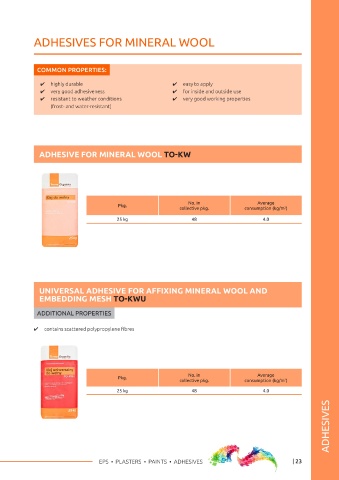 UNIVERSAL ADHESIVE FOR EPS AND EMBEDDING MESH TO-KU ADHESIVE FOR MINERAL WOOL TO-KW