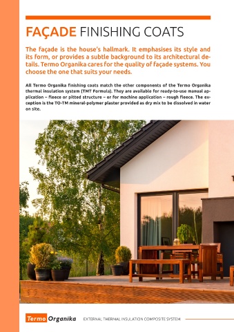 All Termo Organika finishing coats match the other components of the Termo Organika all elements of the Termo Organika External Ther- the products within the Termo Organika External