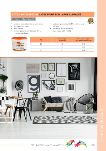 4 washable and stain-resistant 4 for inside use 4 based on water dispersion of latex resins 4 particularly recommended for painting large