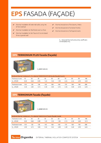Declared thermal resistance R for selected TERMONIUM fasada (façade) boards Declared thermal resistance R for selected GOLD fasada (façade) boards