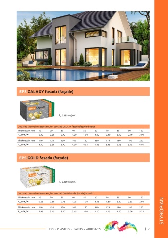 Declared thermal resistance R for selected TERMONIUM PLUS fasada (façade) boards Declared thermal resistance R for selected GALAXY fasada (façade) boards