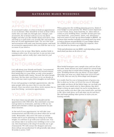 If you end up going to multiple appointments, take the same people with you since they've seen the other dresses. Once you select your dress, invite anyone else to your first fitting / accessories appointment.