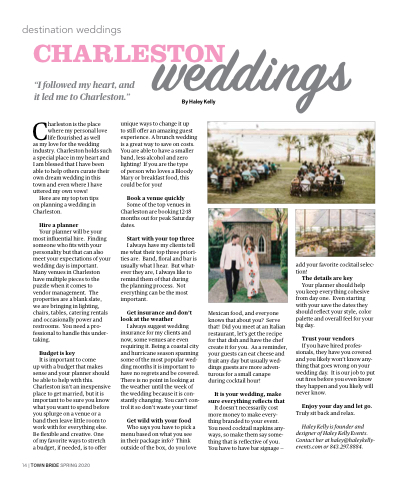 Haley Kelly is founder and designer of Haley Kelly Events. Contact her at haley@haleykelly- events.com or 843.297.8884.