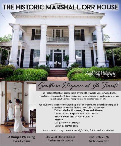 The Historic Marshall Orr House is a venue that works well for weddings, receptions, showers, birthday, anniversary and graduation parties, as well as, meetings, business receptions and celebrations of life.