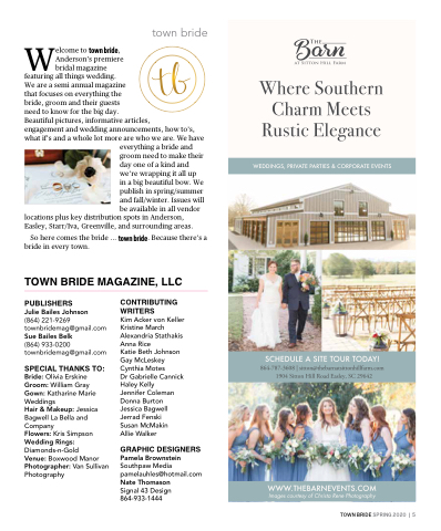 (864) 221-9269 townbridemag@gmail.com Sue Bailes Belk