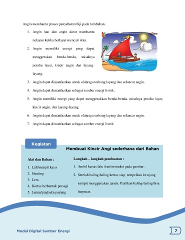 5. Angin memiliki energi yang dapat menggerakkan benda-benda, misalnya perahu layar,