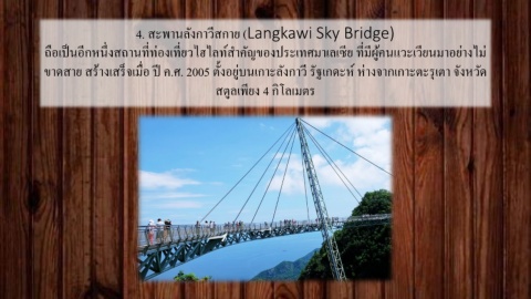 4. สะพานลังกาวีสกาย (Langkawi Sky Bridge) ถือเป็นอีกหนึ่งสถานที่ท่องเที่ยวไฮไลท์สําคัญของประเทศมาเลเซีย ที่มีผู้คนแวะเวียนมาอย่างไม่ ขาดสาย สร้างเสร็จเมื่อ ปี ค.ศ. 2005 ตั้งอยู่บนเกาะลังกาวี รัฐเกดะห์ ห่างจากเกาะตะรุเตา จังหวัด สตูลเพียง 4 กิโลเมตร