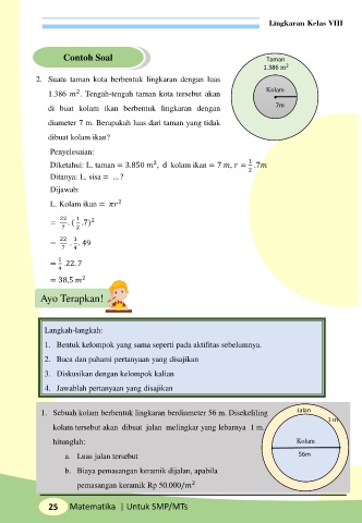 1. Sebuah kolam berbentuk lingkaran berdiameter 56 m. Disekeliling Jalan