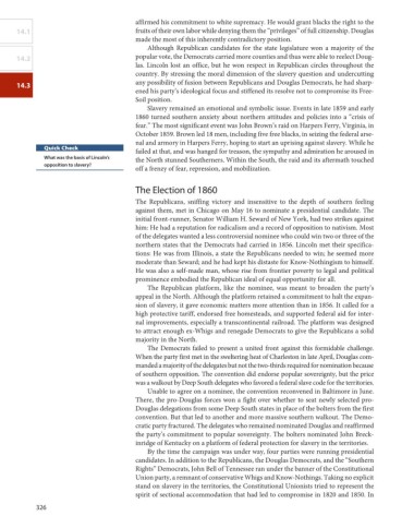 northern states that the Democrats had carried in 1856. Lincoln met their specifica-