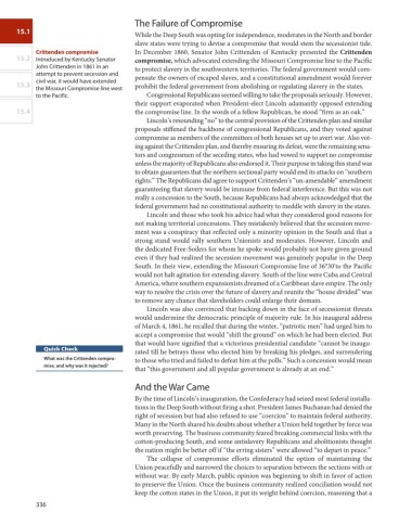 15.1 While the Deep South was opting for independence, moderates in the North and border