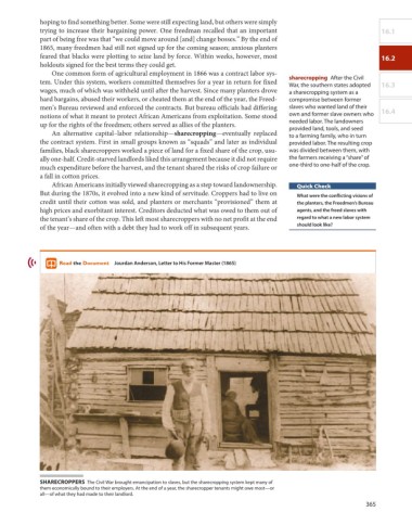 SHaReCRoPPeRS the Civil War brought emancipation to slaves, but the sharecropping system kept many of