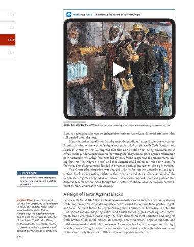 Quick Check tecting black men’s voting rights in the reconstructed states. Since survival of the
