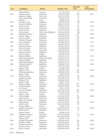1876 Rutherford B. Hayes§ Republican 4,036,298 (48.0%) 185 81.8%