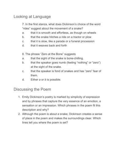 2. Although the poem is about a snake, Dickinson creates a sense