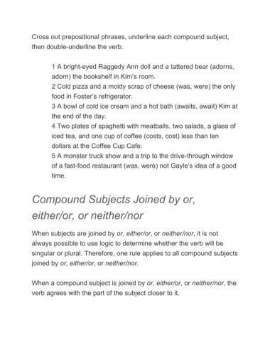 When a compound subject is joined by or, either/or, or neither/nor, the