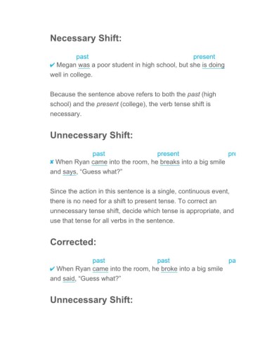 unnecessary tense shift, decide which tense is appropriate, and