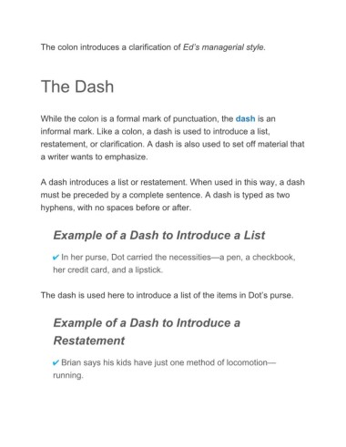 restatement, or clarification. A dash is also used to set off material that