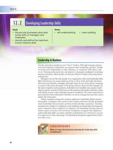 ship for specific activities. If the team is well organized, the leaders will have expert