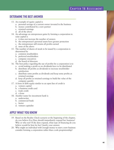 19. Based on the Reality Check scenario at the beginning of the chapter,