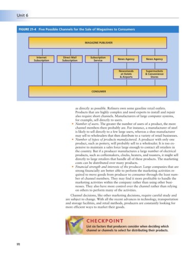 FIGURE 21-4 Five Possible Channels for the Sale of Magazines to Consumers