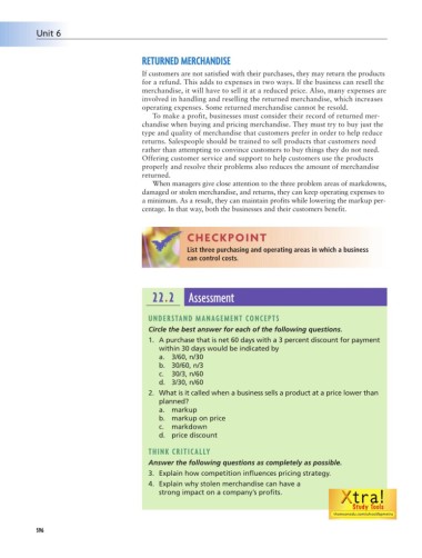 operating expenses. Some returned merchandise cannot be resold.