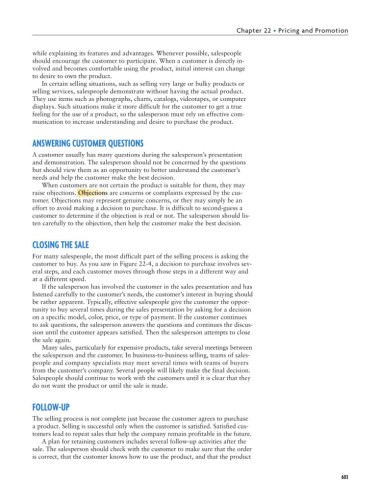 sion until the customer appears satisfied. Then the salesperson attempts to close