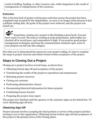 Closing out a project involves several steps, as shown here: