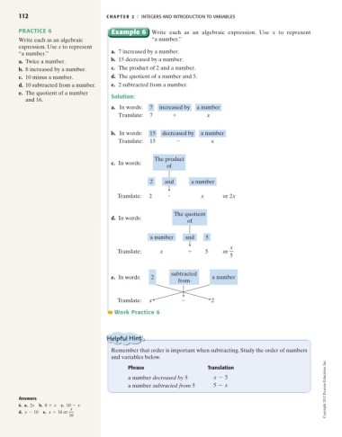 a number subtracted from 5 5 - x Copyright 2012 Pearson Education, Inc.