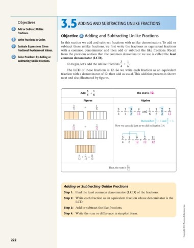 Objectives 3.5 ADDING AND SUBTRACTING UNLIKE FRACTIONS