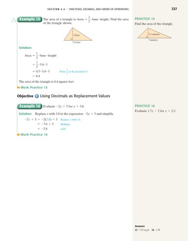 Example 15 The area of a triangle is Area = # base height. Find the area PRACTICE 15