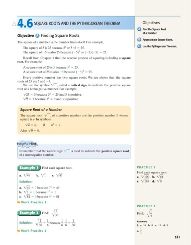 4.6 SQUARE ROOTS AND THE PYTHAGOREAN THEOREM Objectives