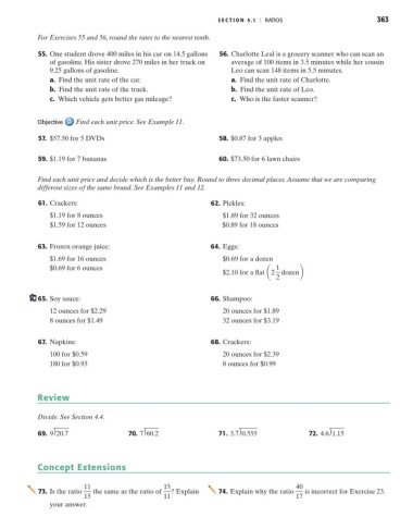 55. One student drove 400 miles in his car on 14.5 gallons 56. Charlotte Leal is a grocery scanner who can scan an